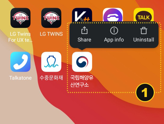1. 모바일앱을 삭제하는 방법과 같이 바탕화면에서 앱 삭제를 시도합니다.